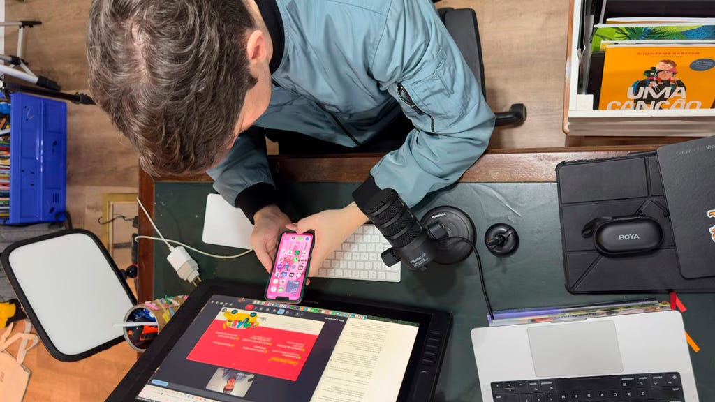 Mas, no meio do caos, surgiu um anjo chamado Rodrigo, que ofereceu seu canal no YouTube para transmitir a aula. (Aliás, se você gosta de literatura infantil deveria acompanhar o seu conteúdo.) Alguns minutos depois, tudo estava funcionando. A noite foi incrível e eu saí muito feliz.